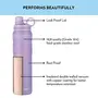 The Borosil Hydra Thirst Burst Lavender Water Bottle offers a refreshing hydration experience with its sleek design and functional features. Its ergonomic design fits comfortably in hand, making it easy to carry on-the-go. The bottle's lid is simple to open, allowing for quick and hassle-free access to your drink whenever needed. As claimed, the vacuum-insulated stainless steel construction effectively maintains the temperature of your beverage, keeping it cold or hot for extended periods. With its combination of style and functionality, the Borosil Hydra Thirst Burst Water Bottle is a reliable choice for staying hydrated throughout the day.