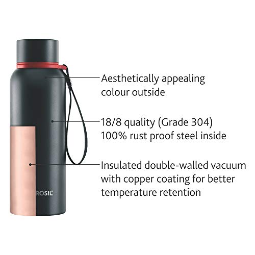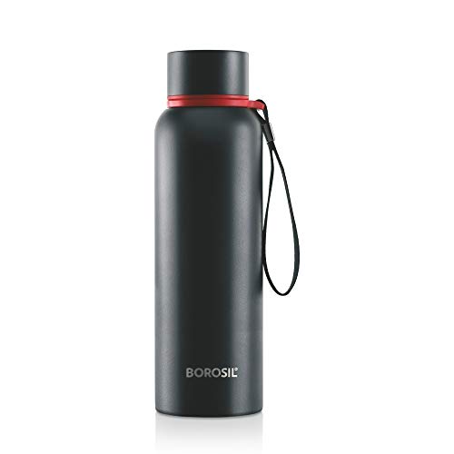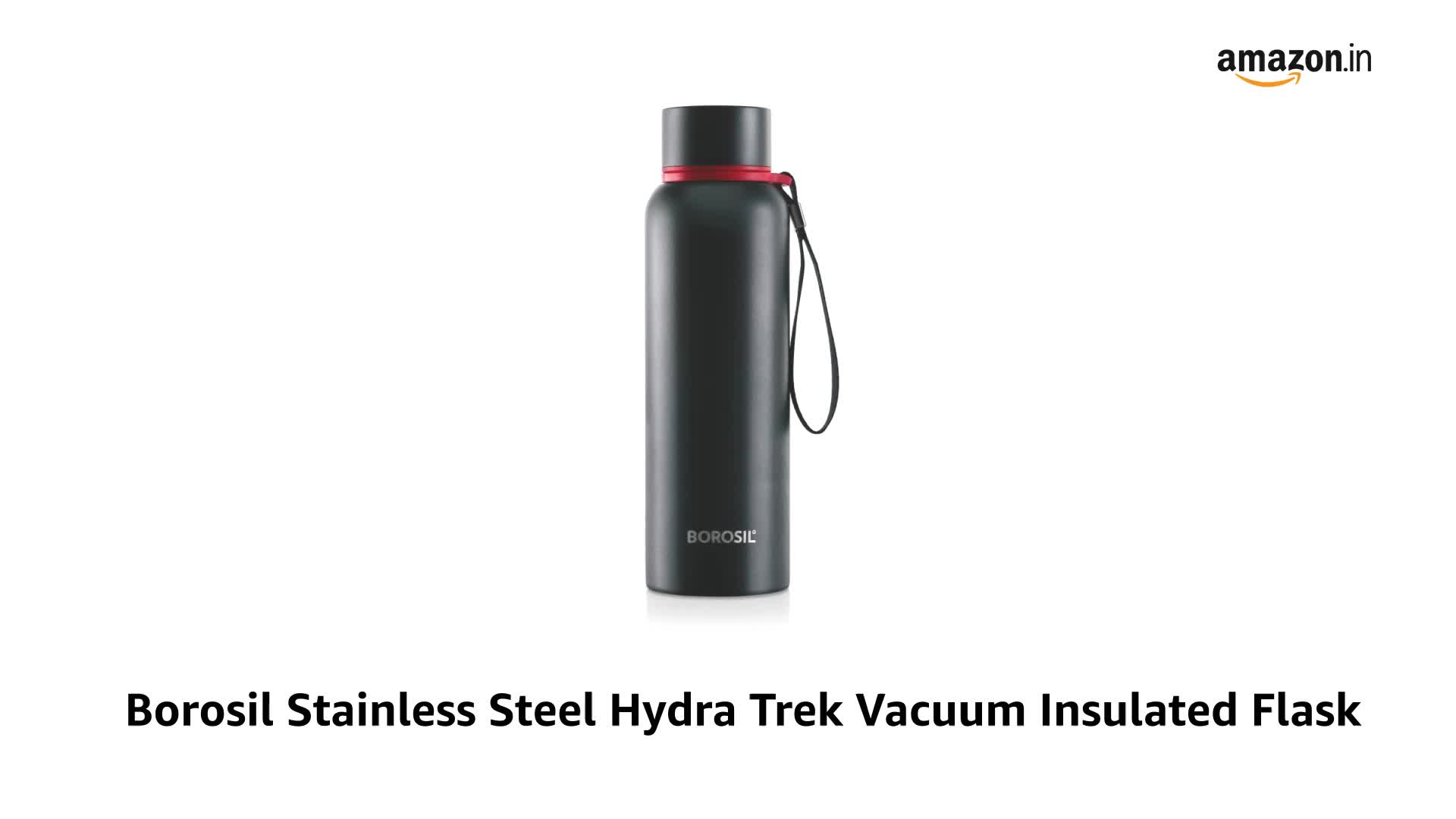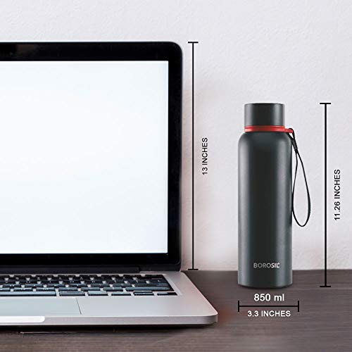 HomeKitchenContainersBottlesBorosil Hydra Trek 850 ml Stainless Steel Water Bottle | Double Wall Vacuum Insulated Flask, Black | 20 Hours Hot & 24 Hours Cold | Ideal for Personal & Corporate Gifting | 1 Year Warranty