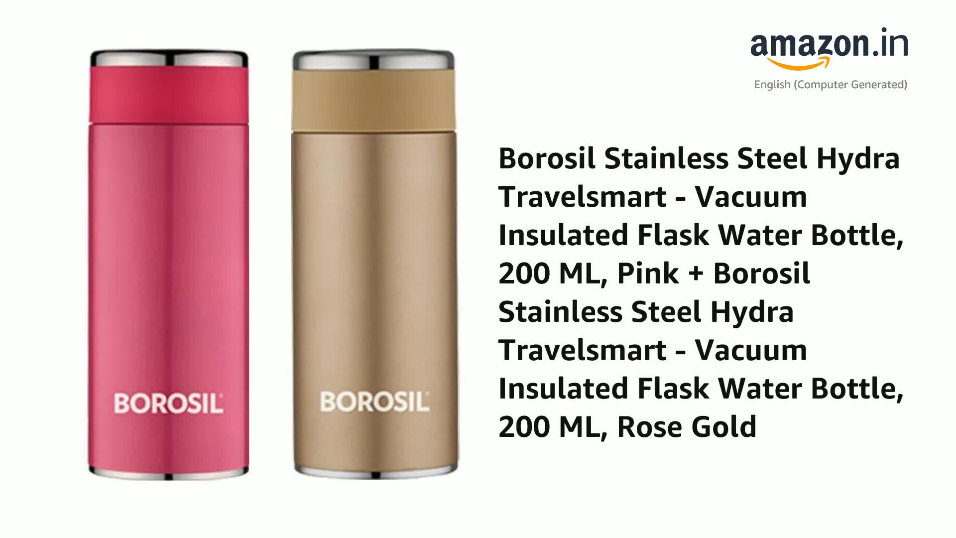 Borosil Stainless Steel Hydra Travelsmart - Vacuum Insulated Flask Water Bottle, 200 ML, Pink + Borosil Stainless Steel Hydra Travelsmart - Vacuum Insulated Flask Water Bottle, 200 ML, Rose Gold