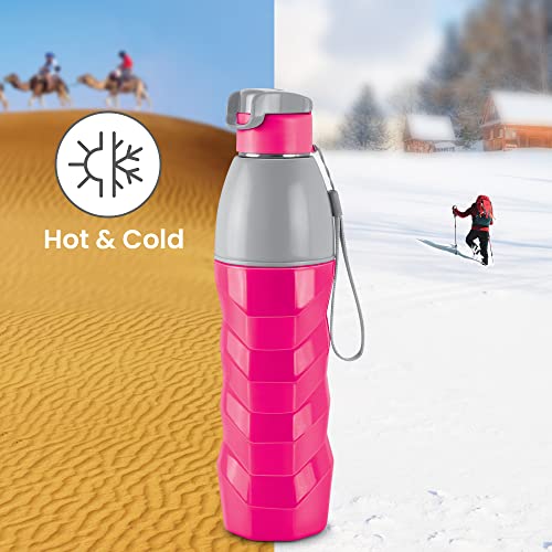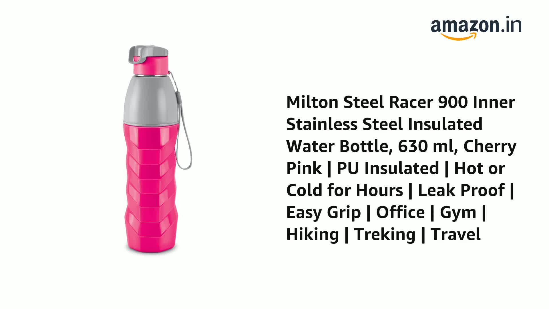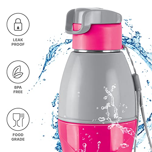 Milton's Steel Racer water bottle is designed especially for young kids with an insulated stainless steel interior to keep their drinks hot or cold for hours. Use for storing hot water up to 40°C temperature. Filling the drink to full capacity ensures maximum temperature retention. This Bottle is unique in shape it has leak proof technology which make this bottle easy to carry at school office gym hiking treking travelling. When it comes to drinking fresh and clean water during travelling it is best way to carry water from home to avoid any contamination. The best way to remind yourself to drink water is to carry a bottle with you. It not only keeps the water clean but also retains temperature for hours. Hence carry hot water for a days journey during winter and simple cold water during summer to refresh yourself while travelling. This Product Is Under 1 Year Warranty From The Date Of Retail Purchase Against Any Manufacturing Defects In Material And Workmanship. The Warranty Does Not Cover Damages Resulting From Accidents Mishandling Or Tampering With The Mechanism. Warranty Valid Against Producing Original Bill Endorsed By Seller.