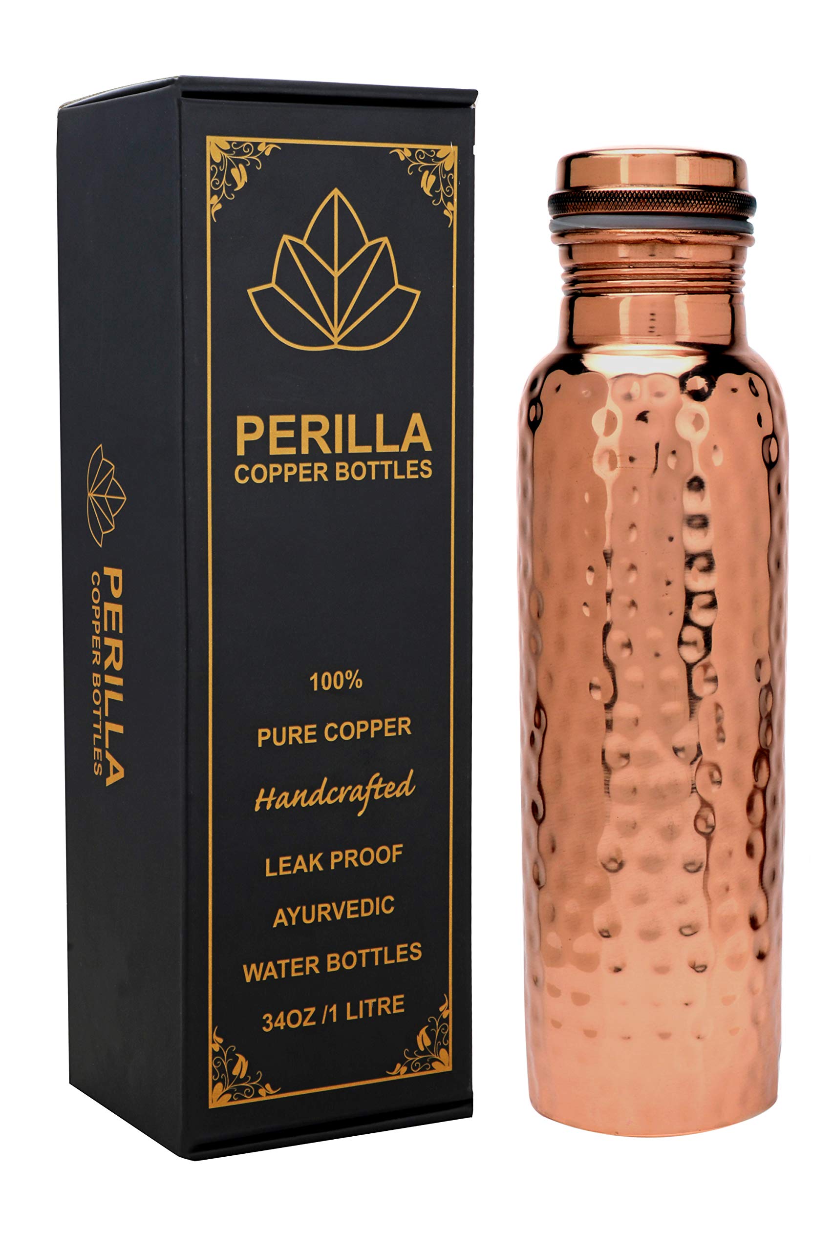 At Perilla the bottles are designed for your active lifestyle. Take your Ayurvedic bottle to Yoga Pilates Spin Class Work or the Gym with confidence. With a new and improved leak proof water tight screw top lid your water will always stay where it belongs even when the bottle is upside-down! Plus cleaning Perilla Home Bottles is fast and simple just use lemon or Vinegar water and rinse or use a bottle brush with a mild soap and air dry. We strive to have the best pure copper water bottle on the market. We use high-grade copper and we do not use any coating. Customer satisfaction guaranteed - wed love to hear your feedback!