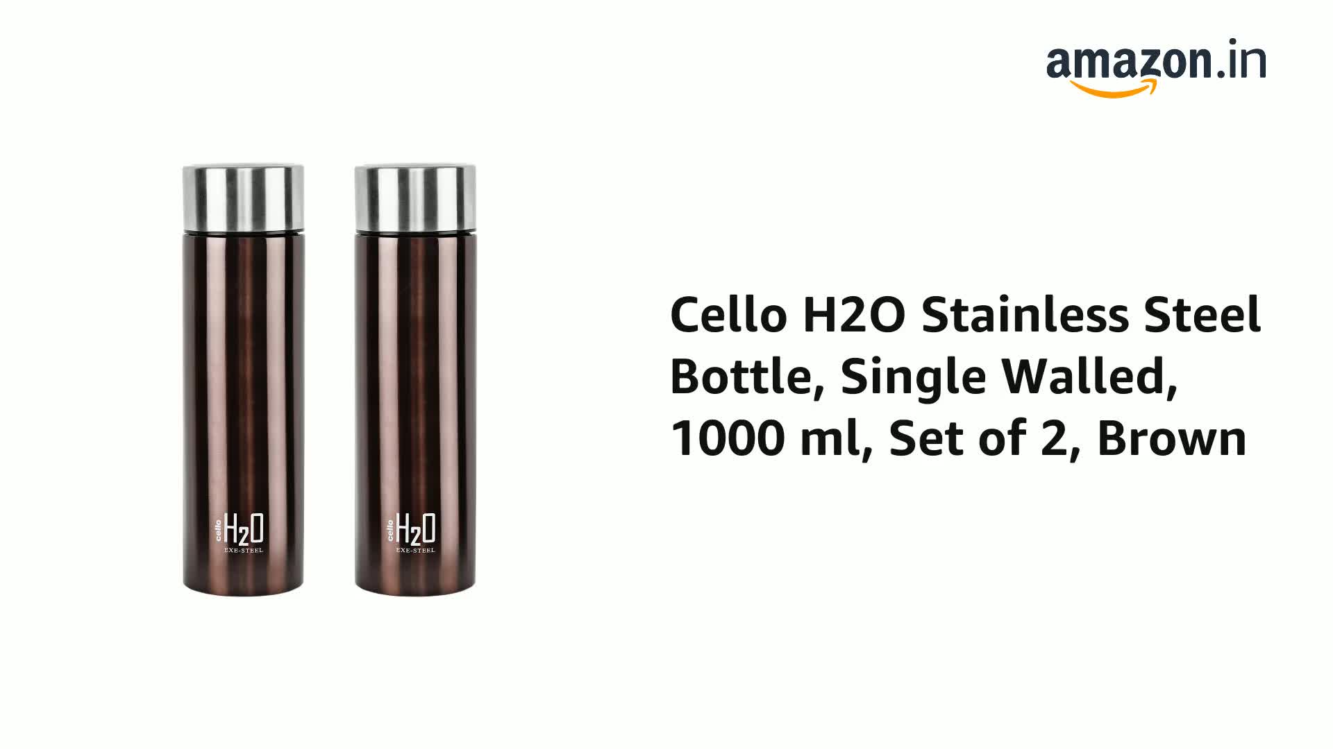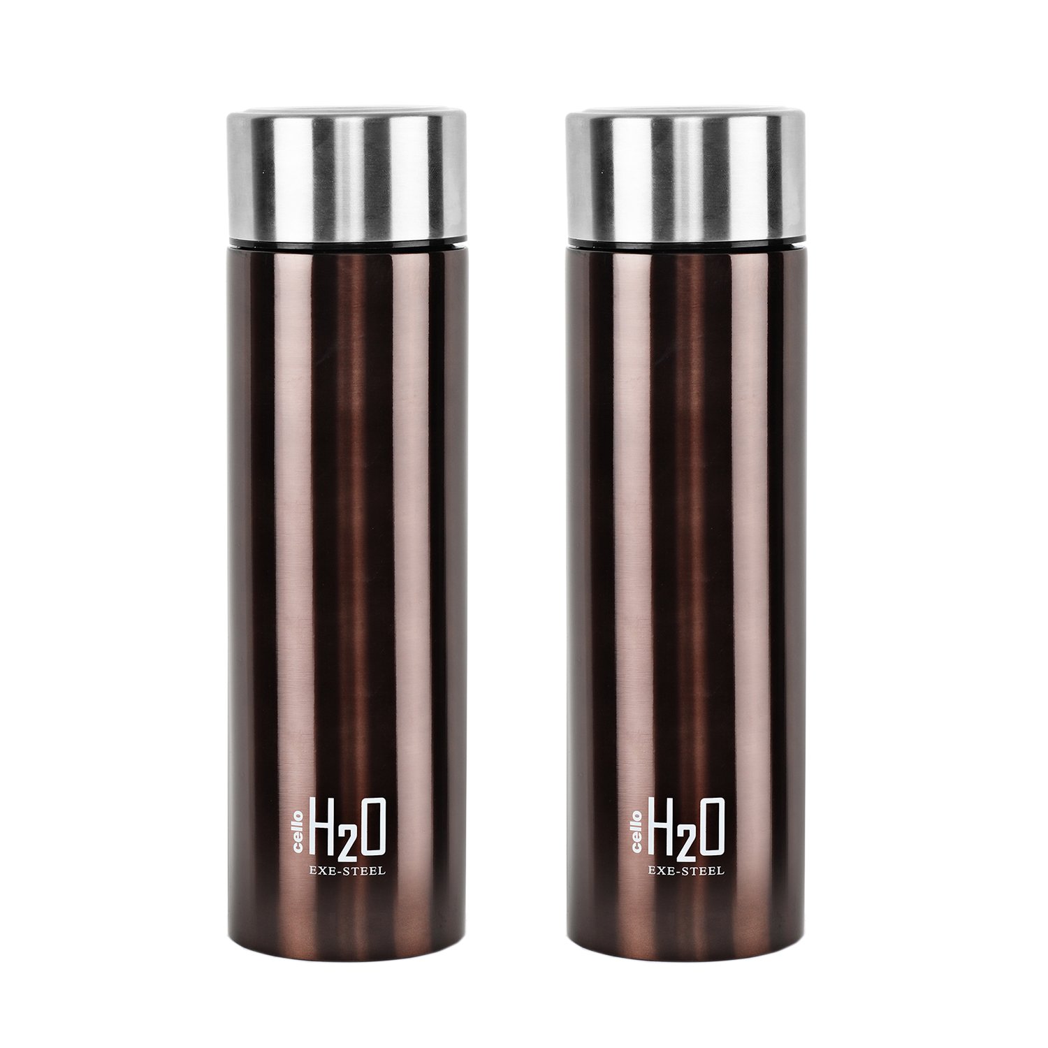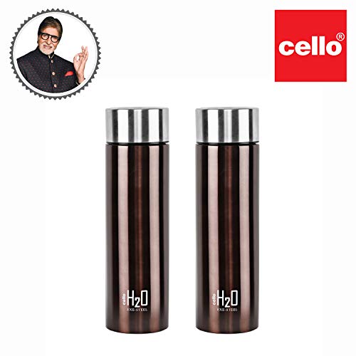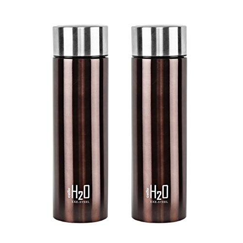 Cello H2O Stainless Steel Water Bottle Set of 2, 1 Litre, Brown | Leak proof and Break-proof | Best Usage for Office/School/College/Gym/Picnic/Home/Fridge