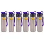 • Steel A1 Grip & Sip Kids Water Bottle | Sipper Bottle for School 750 ml Silver & Purple-6 Piece Set