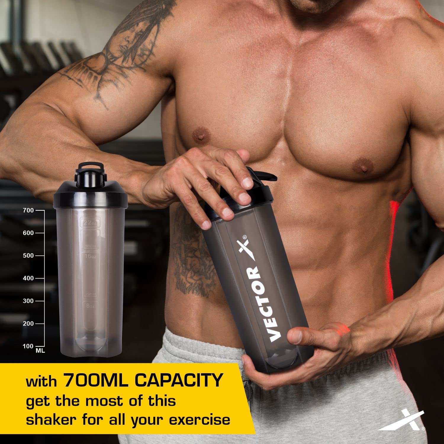 Vector X Nitro Shaker storage capacity and leak proof. 100% Non-Toxic and BPA Free. Unique Lock and open mouth feature. Light weight easy to carry and use. Asymmetrical one-hand design / easier to grab and hold on the side-line or in the gym. Translucent body enables you to track your consumption throughout your workout Quick lock and open mouth function allow easy flow of water. It's a MUST HAVE sport Shaker bottle for Jogging Gym Yoga Runners Athletes CrossFit Travel Hiking Cycling Tennis Camping Workouts Work Office School or Outdoors Eco friendly recyclable reusable and shatterproof giving you a healthy and less expensive option than bottled water making it the PERFECT GIFT for that active someone on the go