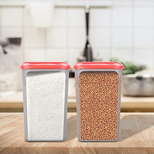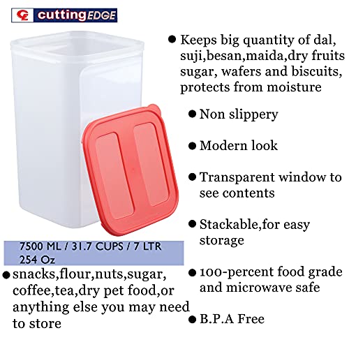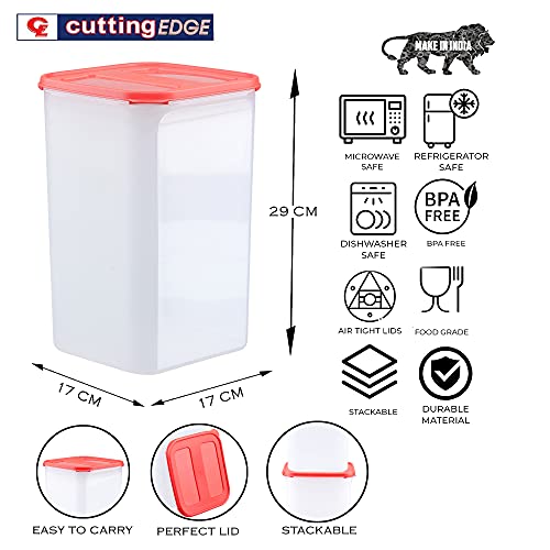 Cutting EDGE Square Modular Air Tight Multi Purpose Container Set - For Rice Flour Cereals Sugar & More (Red) (2 7.5L)