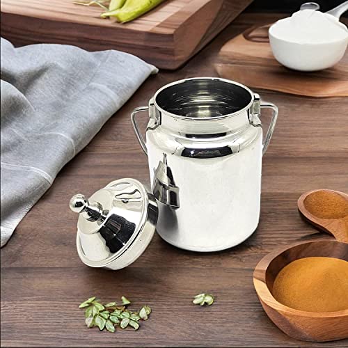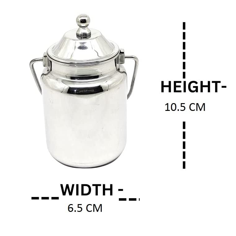 A prefect multipurpose storage container Can be used for sauce oil ghee etc The items are made with steel which gives them a bright and elegant look. Shining steel ware is a glamorous kitchen addition and is also durable and long lasting Ghee/Oil pot has been crafted from stainless steel and the mirror finish body gives it an authentic and rich look Used for storing Ghee Oil & many more daily essential products. Unique Stylish And Elegant Design and Looks. Comes with Lid and handle multipurpose in use Easy to clean & maintain. Light weight and compact oil storage will not occupy much space in your kitchen. Convenient and easy for use also perfect for outdoor cookingpicnic Product Dimension-6.5x6.5x10.5 cm Capacity- 400 ml