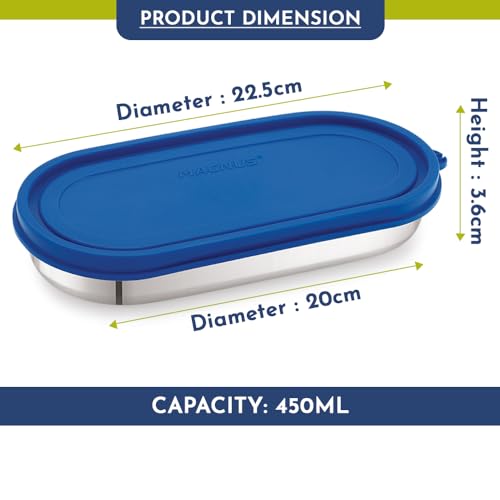 Magnus Easy Lock Oval Prime Container, Stainless Steel, Airtight & Leakproof Lid & Container, for School, Office Picnic, Ideal for Men,Women and Kids (Royal Blue,450ml)
