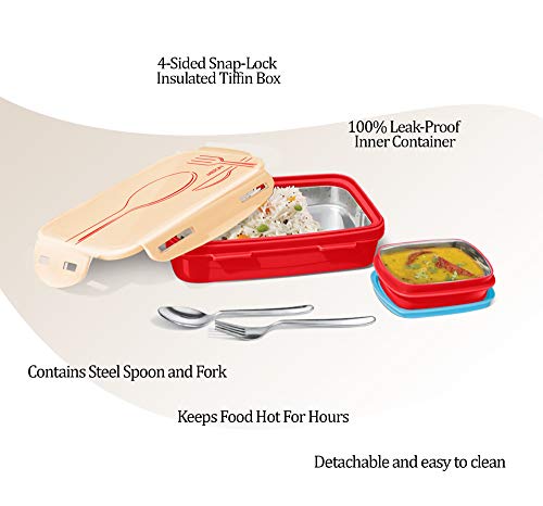 Pattern:Tiffin BoxThis insulated tiffin comes with a high quality of an inner stainless steel with an additional of leak-proof inner container it has steel spoon and fork too. The inner container is 100 percent leak-proof which makes it easy for your child to carry at school picnics.