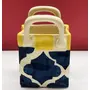 KHURJA POTTERY Handpainted Ceramic Small Cutlery Holder Set of 1 Blue & Yellow