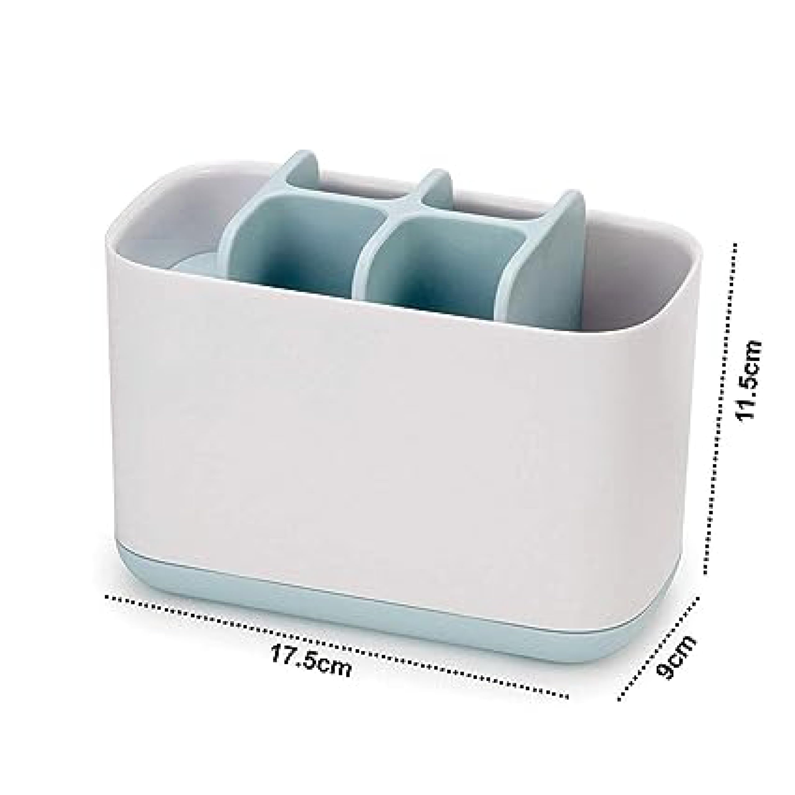 SR large toothbrush caddy is divided into several sections providing organized storage for a range of oral care items including toothbrushes toothpaste tubes and dental floss. It dismantles for easy cleaning and features a shallow compartment for small items a ventilation hole for quick-drying and a non-slip base. Wash and dry by hand.
