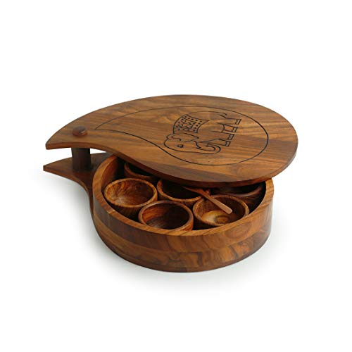 ExclusiveLane 'The Elephant Warriors' Hand Carved Spice Box In Sheesham Wood (7 Containers) -Masala Box For Kitchen Wooden Spice Box Set Masala Dabba Designer Spice Container Spice Set Masala Dani