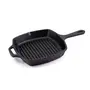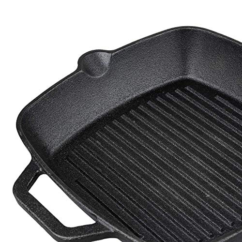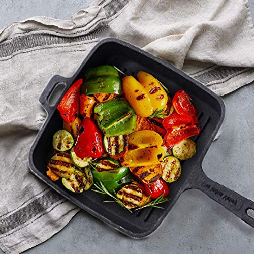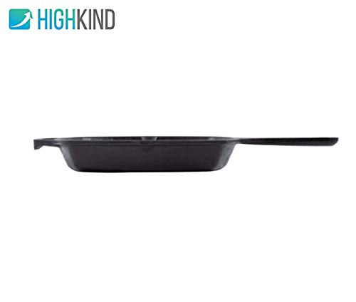 Highkind Pre-Seasoned Cast Iron Grill Pan 10.5 Inches Square Grill Frying Pan with Handle (Black Long Handle)
