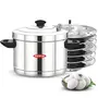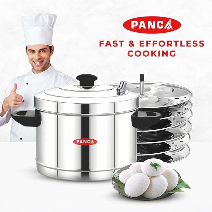 PANCA Idli Maker 6 Plates Stainless Steel 24 Idli Cooker | Induction & Gas Compatible Idly Steamer Pot | South Indian Idli Kadai with Dhokla Patra Steamer, Sambhar Chutni Wada Maker 15L Silver