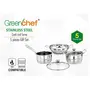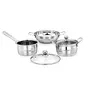 Material: Stainless Steel; Included components: 1 Saucepan1 Kadai with glass lid 1 Serving pot with glass lid .