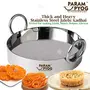 Stainless Steel Jalebi kadhai with handle 100% product these Kadai are making that Jalebi Imarti Malpua and Ghewar. completely hand-made pre-treated kadhai pan without any chemical coating; works as good as non-stick you can use your Stainless Steel kadhai for roasting grilling broiling shallow frying in a small quantity of oil or deep-frying in plenty of oil. They are good for water-based cooking like poaching and boiling.Relish delicious cuisine in Indian style. This PARAM UPYOG kadhai is a centerpiece cookware item for Indian food. Cook Indian dishes for your friends and family in this unique and ethnic-looking centerpiece. With this cookware utensil your Indian-style cookware experience goes several notches up. This kadhai is made of stainless steel and this kadhai has an intricate traditional hammered design to provide it a royal look. It is perfect for cooking dishes. This cookware utensil is of classy finish and gives an elegant look to kitchen decor. Used for preparing and cooking food or stylishly serving food. The superb design of the cookware makes it a great addition to your antique cookware collection.PARAM UPYOG Stainless Steel Wok is perfect for making Jalebi Imarti Malpua and Ghewar.The bottom of this cookware makes it efficient for cooking and saves fuel up to 35% also saves electricity and time.This kadhai is a modern version of the traditional Indian cooking utensil used for flavorful food.This Kadai is durable for everyday cooking and distributes heat evenly so your recipes turn out beautifully.Hence taking care of all your kitchen needs PARAM UPYOG stainless steel cookware is carefully designed and fabricated in compliance with industry standards. This cookware is manufactured under strict quality control. This Kadai is strong durable and convenient to clean & wash.Â