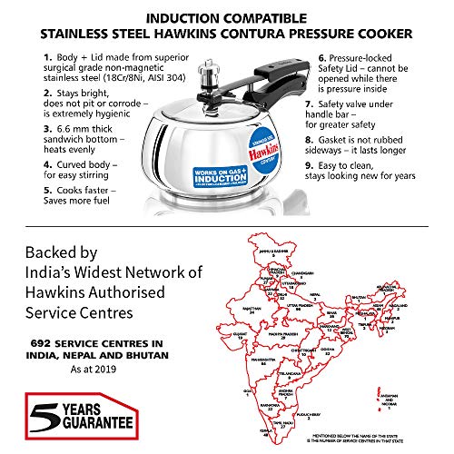 Hawkins SSC20 Stainless Steel Pressure Cooker, 2 Liter, Silver