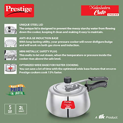 1 x Prestige Svachh 10786 2 L Nakshatra Cute Polished with deep lid for Spillage Control