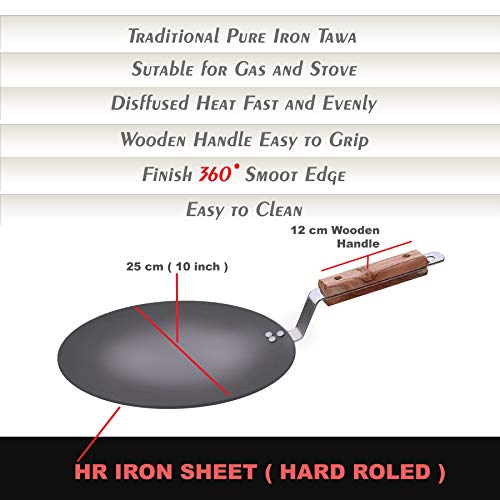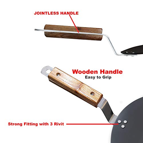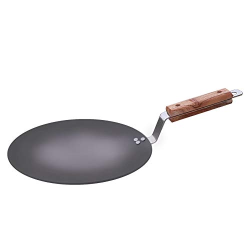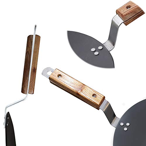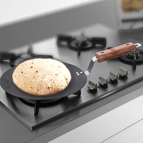 "You can use your Iron tawa pans for Roti Chapati Paratha Dosa Egg Ambalet Bhakari Roasting Sauteing Grilling. This iron tawa heat up quickly and uniformly. Tawa mostly used for faster cooking method and easy to clean. The Craftenka cookware heats quickly and spreads heat evenly which helps in reducing hot spots that can burn food as a result your cookware will continue to provide an exceptional cooking experience. Works well with gas stoves only not compatible with induction cooktops completely hand-made pre- treated Iron Tawa without any chemical coating"