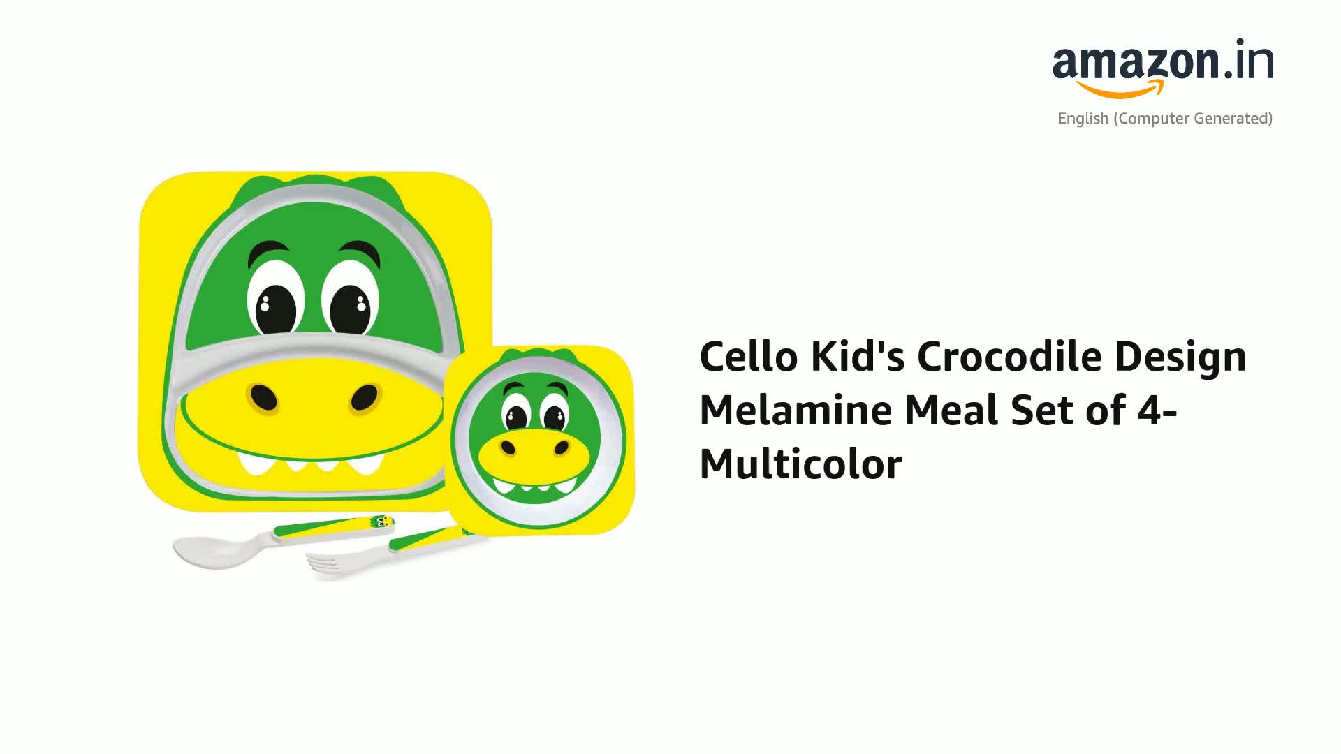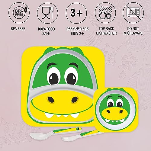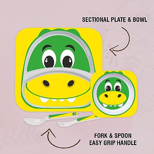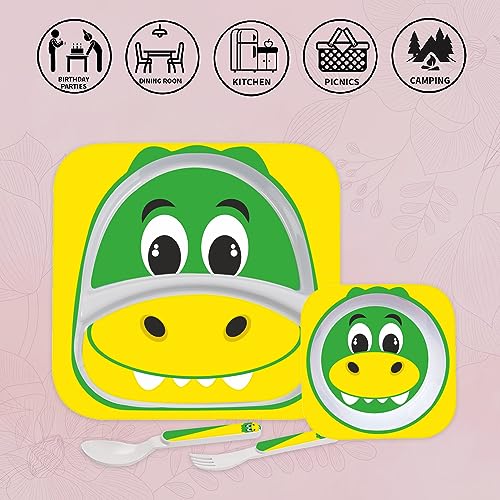 Cello Kids Meal Melamine Dinner Set with Crocodile Print | Safe and hygenic for Kids to use | Attractive and Long Lasting Designs | Break Resistant | Yellow, Set of 4
