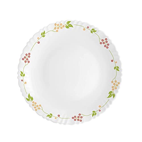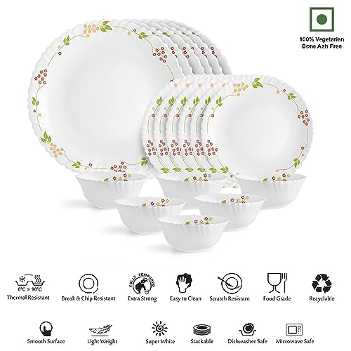 Cello Opalware Dazzle Series Secret Garden Dinner Set, 18 Units | Opal Glass Dinner Set for 6 | Light-Weight, Daily Use Crockery Set for Dining | White Plate and Bowl Set