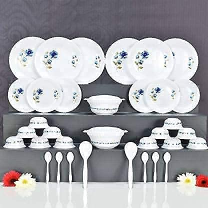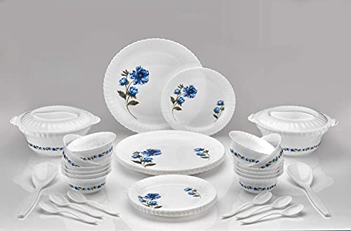 ignito Exclusive Dinner Set of 36psc Microwave Safe Plastic Printed Round Dinner Set - 6 Big Plates 6 Small Plates 12 Small Bowl 2 Big Spoon and 6 Table Spoon 2 Big Bowl with 2 Lid (Multicolor)