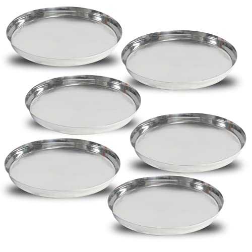 LiMETRO STEEL Stainless Steel Heavy Gauge Pack of 6 Steel Dinner Plates Set / Bhojan Thali / Lunch Plates / Dinner Set (6 Pieces 28 cm Diameter.)