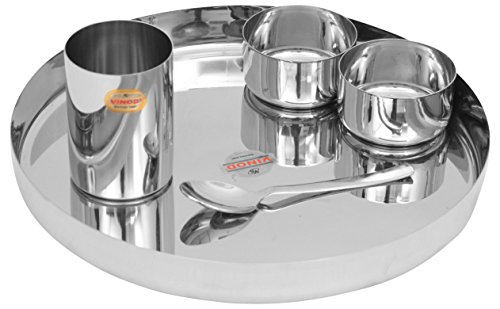 Vinod Stainless Steel Dinner Set, 5-Piece, Service for 1, Silver, V.Thali Set ( Khum 2) 13