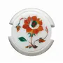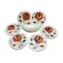 The White Marble Inlaid Coaster set is made in Agra India & fully handmade with inlay stone not a color or paint. It is a Decorative Art piece from the City of Taj Mahal and Perfect Example of Make in India. We will send you a paper with description and Meaning of the stone . We will send you wooden stand also to display. We are himself manufacture of this product so we do custom design also according to your color size and shape and bulk order too. To maintain this art piece simply clean it with soap water and dry cotton cloth. It is an art piece which will be a beauty & the conversation piece at home and perfect example of make in India. Stone are inlaid in the Plate. Malachite - Green. Carnelian - Orange. Jasper - Brown. Turquoise - Light Blue. Mother Of Pearl - White.