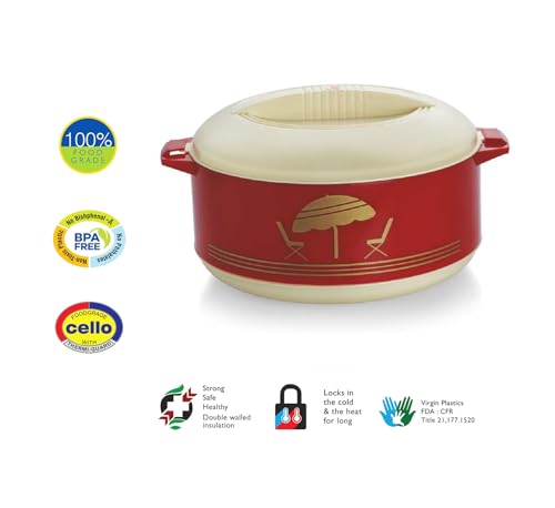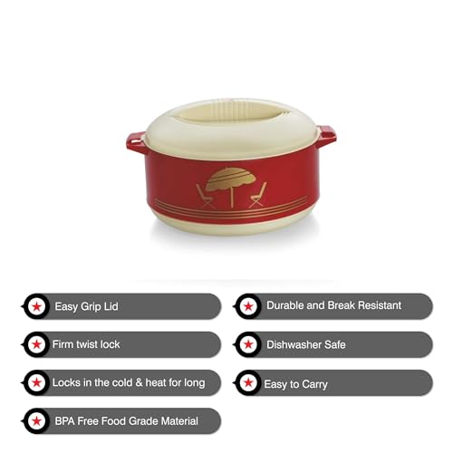 Cello Plastic Solid Insulated Food Server Casserole - 3.5L, Red