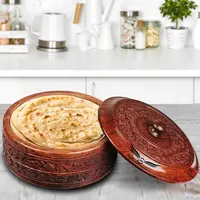 SAHARANPUR HANDICRAFTS Wooden Casserole Box with Engraved Brass Design with Stainless Steel Inside| Kitchen Serving Set| Hotpot for Chapati- Brown Tableware Serveware