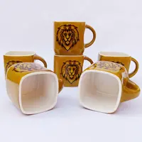 KHURJA POTTERY Coffee Tea Mugs Cups Set of 6 Studio Pottery Ceramic (Dijon Lion face 150 ML) Set of 6 Microwave & Dishwasher Safe |