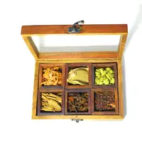 KHURJA POTTERY Wooden Herb and Spice Box or Masala Dani with Spoon