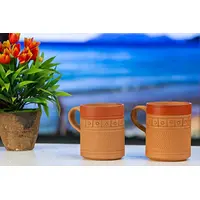 Karru Krafft Handcrafted Terracotta Straight Design Microwave Safe Coffee Mug for Home Usable Cafeteria Usable Tabelware Corporate Gifting160 ml (Set of 2)