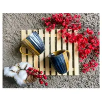 KHURJA POTTERY Ceramic Hand Painted Large Tea/Coffee Mugs Yellow Set of 2