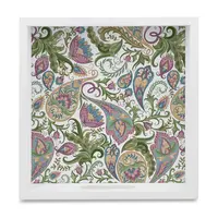 BIJNOR - METAL INLAY IN WOOD Serving Tray | Sameera White Design with White Border | Square 9" x 9" Wooden Tray for Serving | Tray for Decoration with Cut-Out Handles