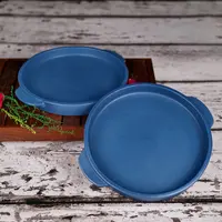 KHURJA POTTERY 'Pastel Blue' Serving Platter for Snacks - Platters Pizza Serving Ceramic Platter Starter Plates Blue Pottery Microwave Safe (Set of 2 Matte Finish)