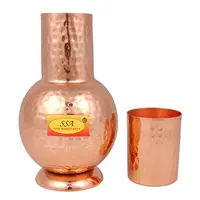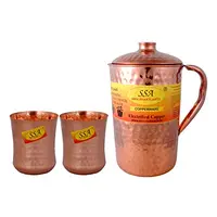 Shiv Shakti Arts® Shinee Hammer Luxury Design Pure Copper Jug with Glass Set - (Capacity - 2.2 Liter) - 3 Pieces Drinkware Set
