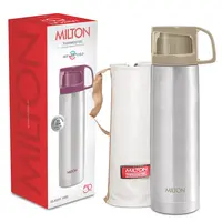 Milton Glassy 1000 Thermosteel Vacuum Insulated Double Walled Flask with Drinking Cup lid & Jacket, 1000 ml Water Bottles,24 Hours Hot & Cold,Easy to Carry,Rust Proof, Tea, Coffee,Travel Bottle,Grey