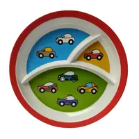 SAHARANPUR HANDICRAFTS Melamine Kids Plate | Round 3 Section 10'' Multicolor Plate with Prints for Boys and Girl | Food Serving Plate with Partition (Car Gangster Round Shape)
