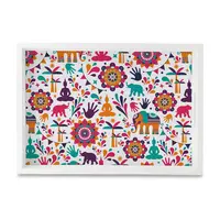 BIJNOR - METAL INLAY IN WOOD Serving Tray | India Design with White Border | Rectangular 10" x 14" Wooden Tray for Serving | Tray for Decoration with Cut-Out Handles