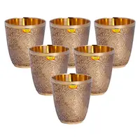 Shiv Shakti Arts Pure Brass Glass Tumbler Embossed Flower Nakshatra Design for Drinking Serving Water Decorative Gift Item (6 Pcs = Vol - 280 ML Each)