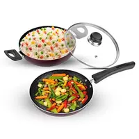 Vinod Supreme Non-Stick 2 Pcs Cookware Set of Kadai with Glass lid 2 litres Capacity (22 cm) and 22 cm Diameter Frypan (Gas Stove and Induction Compatible) PFOA Free - Garnet Metallic