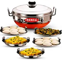 PANCA Stainless Steel 5 Plate Idli Cooker Multi Kadai 2 Idli Plate | 2 Dhokla | 1 Patra | Momo Steamer,Copper Bottom Idli Maker Stainless Steel Idly Pot, 15 Litre