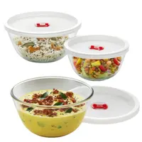Borosil Glass Serving & Mixing Bowls With Lids, Oven & Microwave Safe Bowls, Set of 3 (500 ml + 900 ml + 1.3 L), Borosilicate Glass, Clear