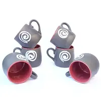 KHURJA POTTERY Coffee Tea Mugs Cups Set of 6 Studio Pottery Ceramic (Grey 250 ml Each Microwave & Dishwasher Safe) | Tea | Hand Glazed & Handmade | Special Rare Edition | Perfect for Gifting