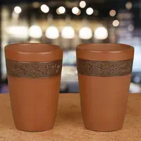 KHURJA POTTERY Handcrafted Tall Beer Milk Lassi Water Juice Glasses Mugs Tumblers (Brown 475ml) Set of 2