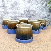 KHURJA POTTERY Coffee Tea Mugs Cups Set of 6 Studio Pottery Ceramic (Brown Blue - 200 ml Each Microwave & Dishwasher Safe) | Tea | Hand Glazed & Handmade | Perfect for Gifting