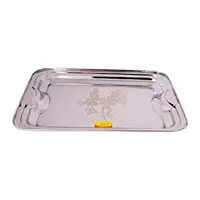 Shiv Shakti Arts Stainless Steel (Heavy Gauge) Serving Tray | Plate | Platter Rectangle - (Laser Flower Design Length - 36 cm)