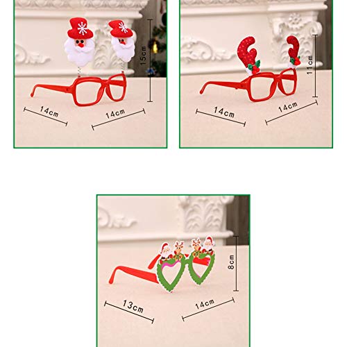 • Thhe adorable glasses are all designed in Christmas elements in classic Chritmas colors red green and gold; the styles are also various including Christmas bow Santa's hat snowman Christmas tree elk horn etc; each pair has flash powder on it that makes yo