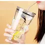 DITYA ENTERPRISE Glass Tumbler with Lid and Silicon Straw Coffee Mug Tea Cup Travel Mug Smoothies Fruit Juice Bottle for Home and Office Milk Thick Shake Mug Juice Mug 470ml (Set of1) transparent